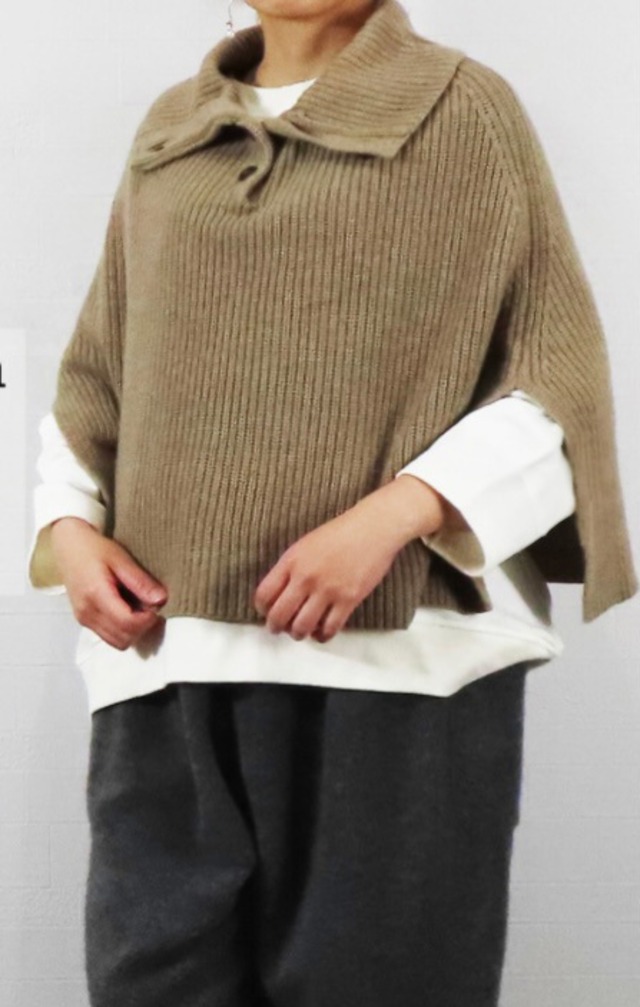 こちらは仕入れ商品になります ふっくら柔らかくて軽い着心地の3WAYポンチョです ボタンの止め方や前後向きを変えて楽しめます 身幅67cm 着丈50cm ナイロン45% 毛30% アクリル25%