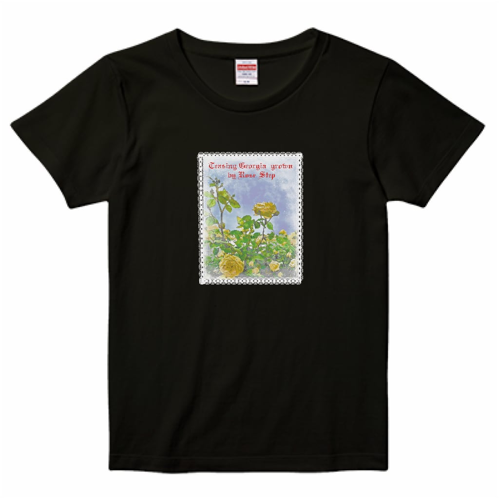 ローズステップのお庭でで咲いた薔薇のオリジナルTシャツ イラスト風