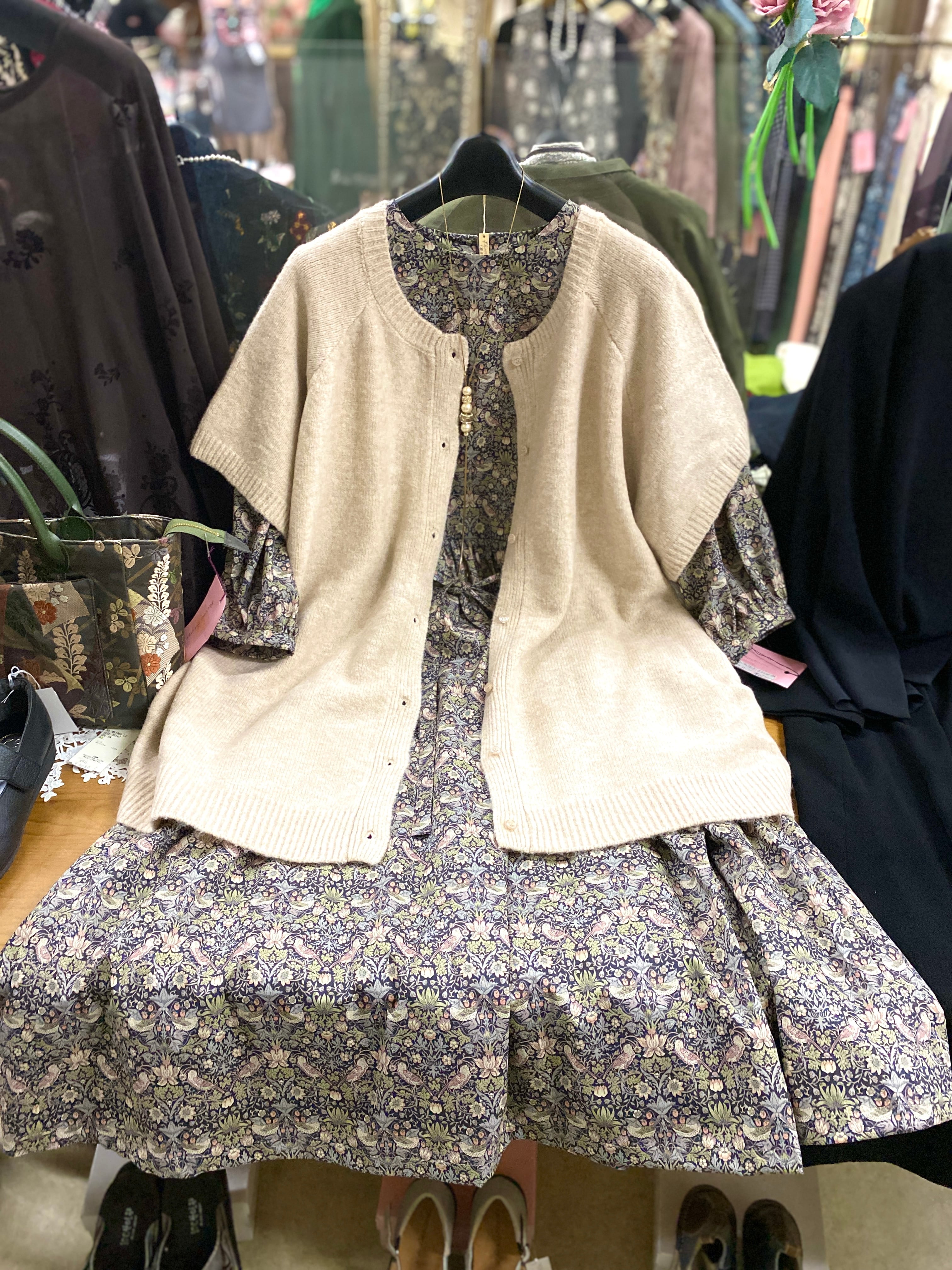 RoseStep オリジナル 2025秋冬 リバティプリント いちご泥棒 ギャザーワンピース