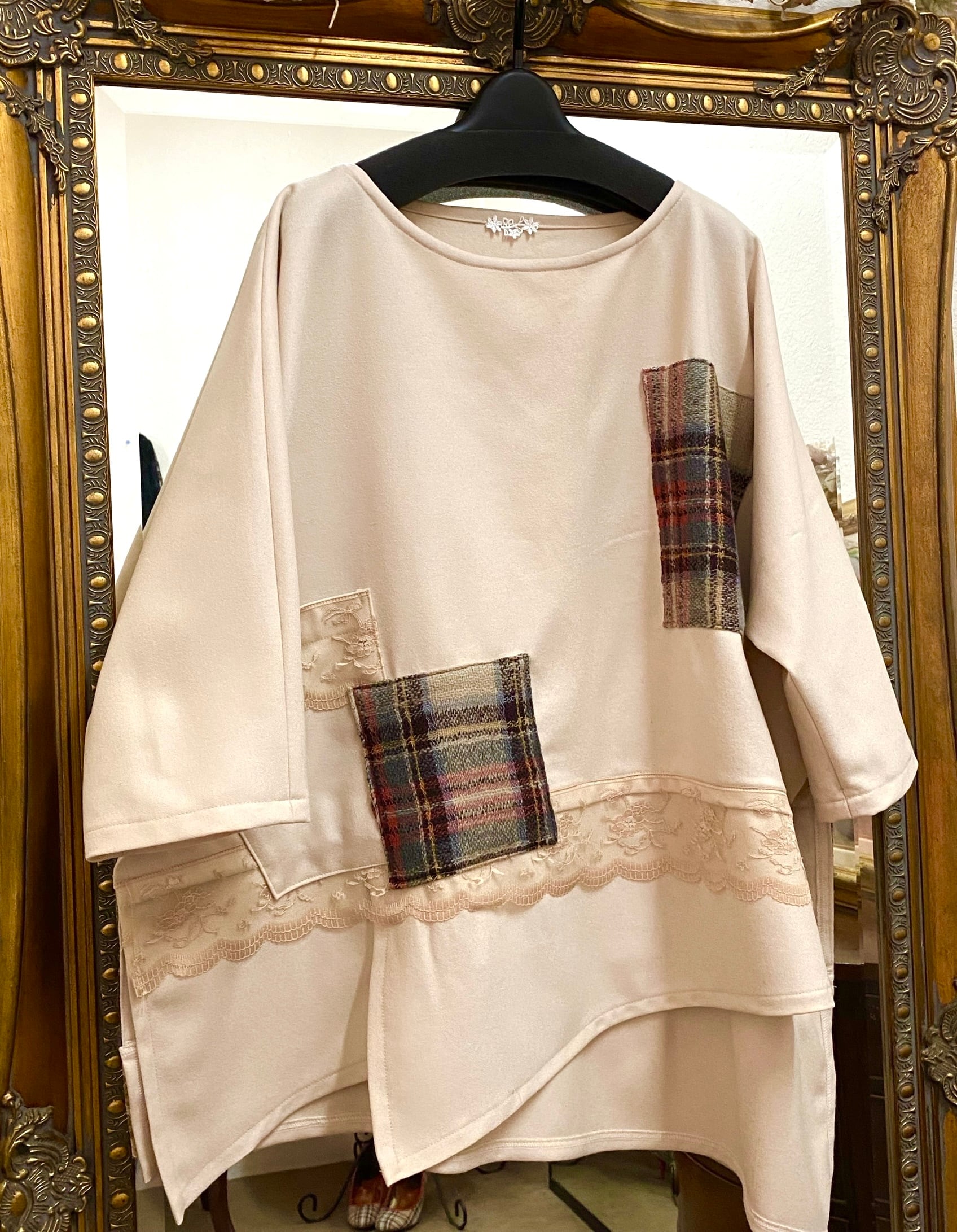 RoseStep ウール混 切り替えオーバーサイズチュニック