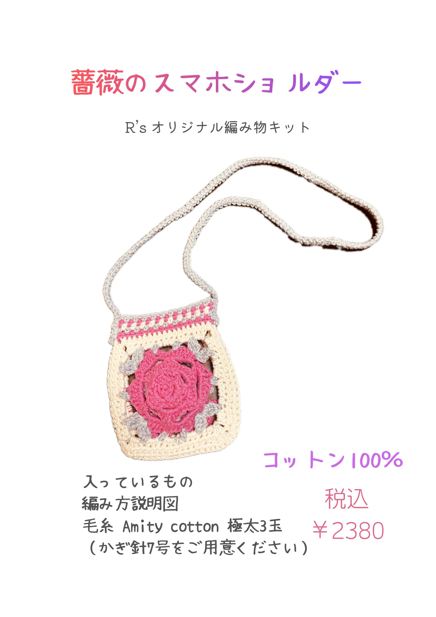 当店オリジナル かぎ針編みの薔薇スマホショルダーバッグ 手作りキット